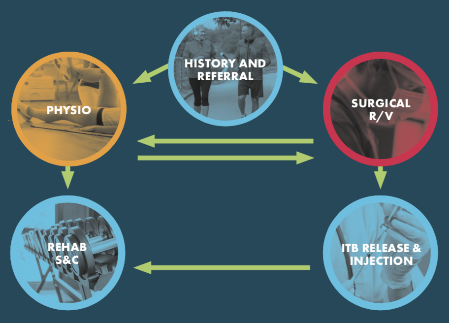 For patients who are not improving their symptoms despite a rigorous conservative treatment as described above, Mr. Vioreanu recommends a surgical procedure called an iliotibial band (ITB) release. The ITB release is a simple, minimally invasive and effective day case surgical procedure that through a small (less than 2 cm) incision lengthens the iliotibial band and as a consequence releases the pressure from the patellofemoral joint.